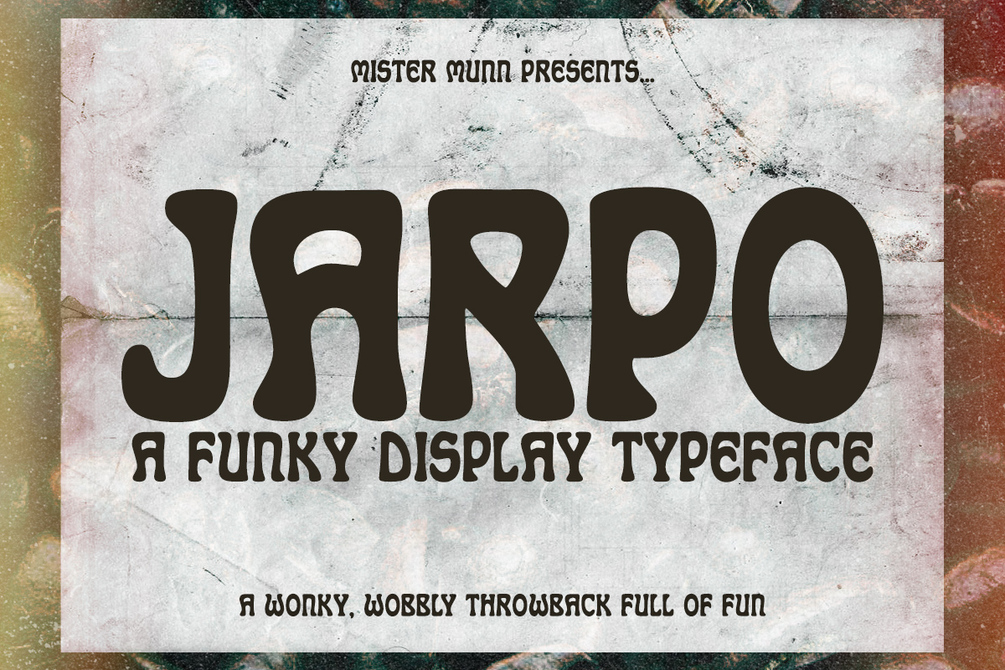 Jarpo is a funky all-cap revival with a few variations thrown in for extra flavor. Suitable for packaging, identity, and title treatments, Jarpo brings a fun tone to any piece of text.